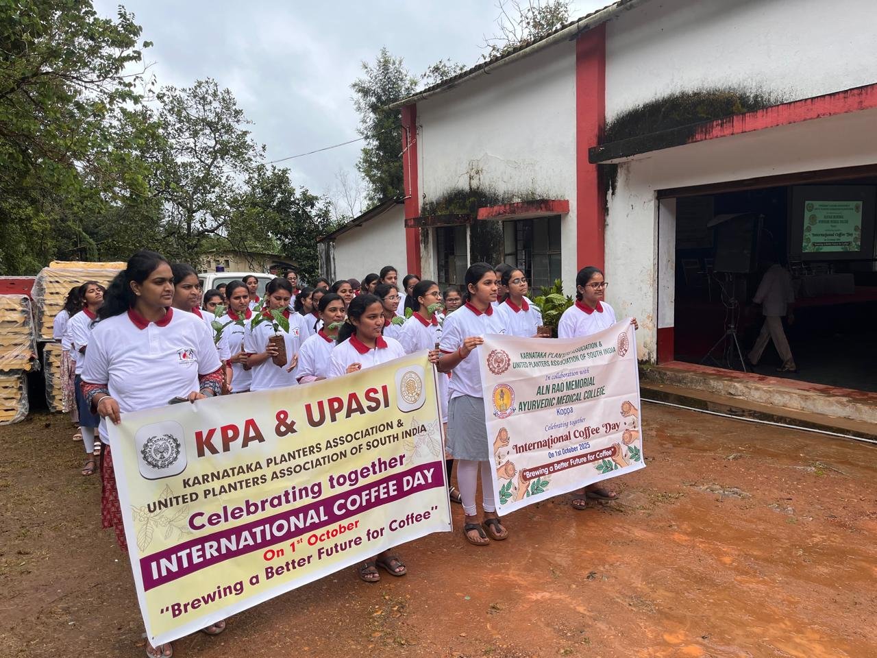 ಅಂತರರಾಷ್ಟ್ರೀಯ ಕಾಫಿ ದಿನದ ಪ್ರಯುಕ್ತ, ದಿನಾಂಕ 1-10-2025 ಬುಧವಾರ ಕೊಪ್ಪದ ಎ.ಎಲ್.ಎನ್.ರಾವ್ ಮೆಮೋರಿಯಲ್ ಆಯುರ್ವೇದ ವೈದ್ಯಕೀಯ ಕಾಲೇಜು, ಯುನೈಟೆಡ್ ಪ್ಲಾಂಟರ್ಸ್ ಅಸೋಸಿಯೇಷನ್ ಆಫ್ ಸೌತ್ ಇಂಡಿಯಾ & ಕರ್ನಾಟಕ ಪ್ಲಾಂಟರ್ಸ್ ಅಸೋಸಿಯೇಷನ್ ಸಹಯೋಗದೊಂದಿಗೆ ಕಾಫಿಯ ಬಹು ಆಯಾಮದ ಉಪಯುಕ್ತತೆಗಳು ಮತ್ತು ಕಾಫಿಯೊಂದಿಗೆ ವ್ಯವಹಾರಕ್ಕೆ ಸಂಬಂಧಿಸಿದ ಜಾಗೃತಿ ಕಾರ್ಯಕ್ರಮವನ್ನು ನಡೆಸಲಾಯಿತು