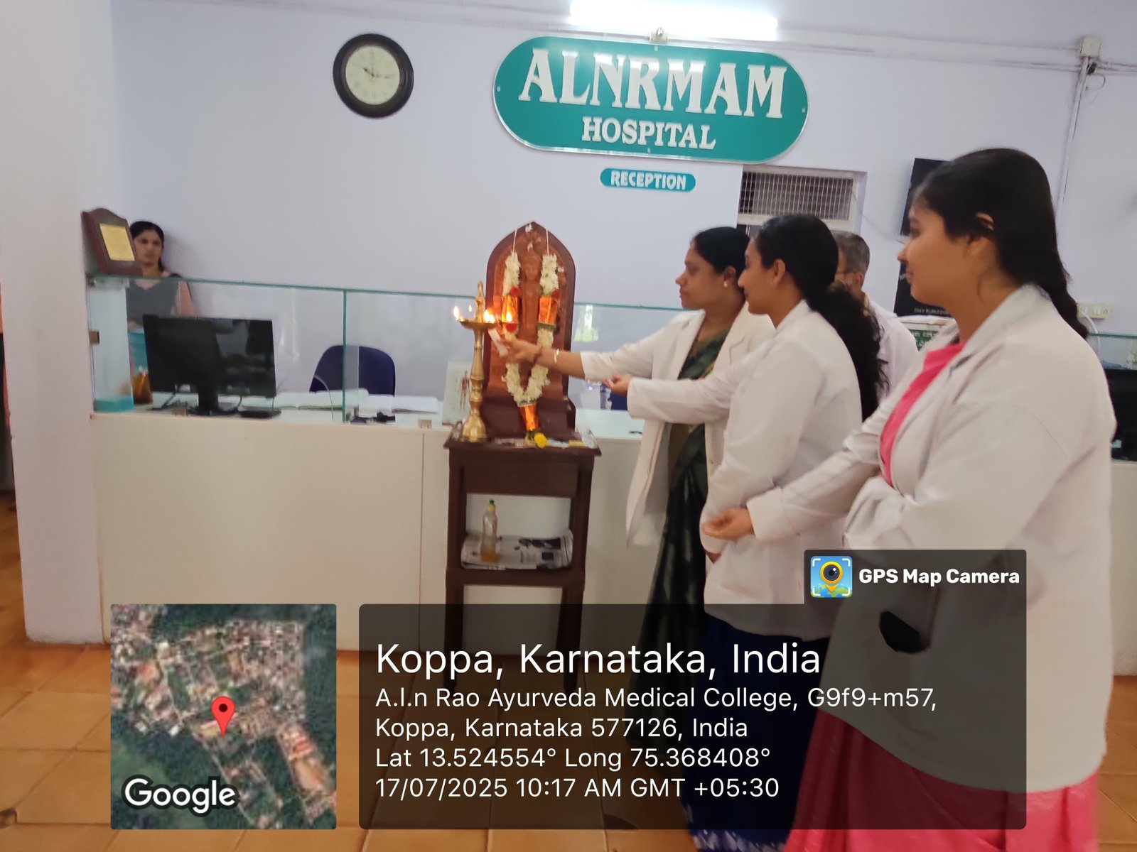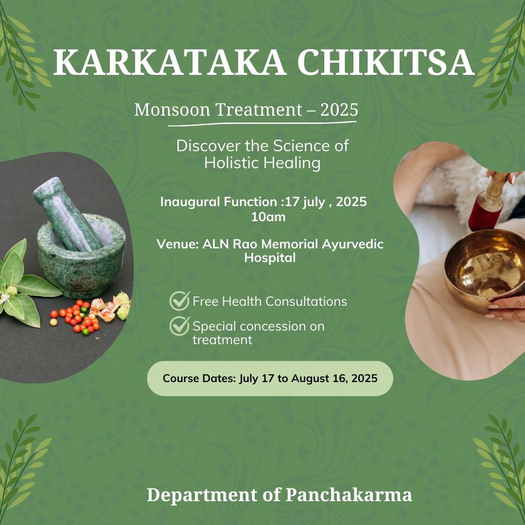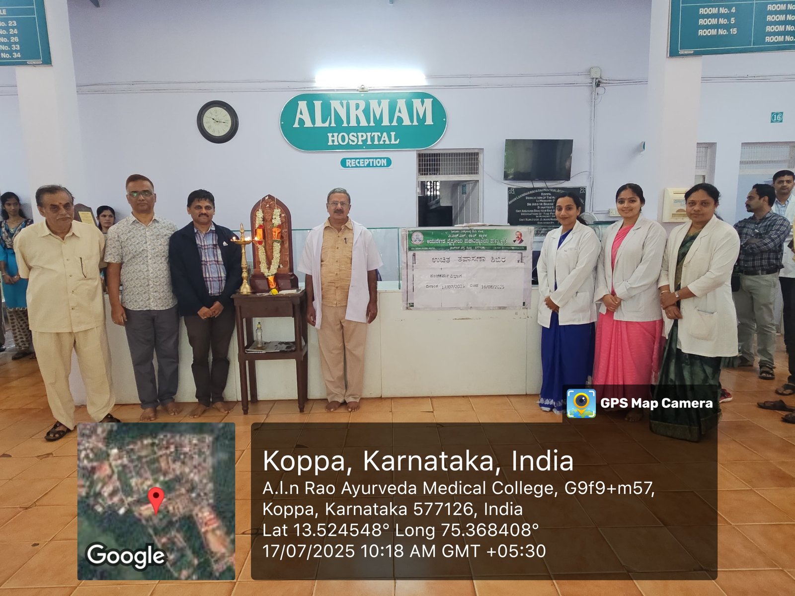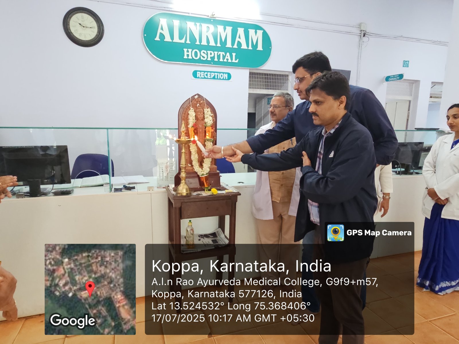 ಎ.ಎಲ್.ಎನ್.ರಾವ್ ಆಯುರ್ವೇದ ಆಸ್ಪತ್ರೆ ಕೊಪ್ಪ ಇಲ್ಲಿ ಗುರುವಾರ ಜುಲೈ 17ರಂದು ಪಂಚಕರ್ಮ ವಿಭಾಗದ ವತಿಯಿಂದ ಕರ್ಕಾಟಕ ಚಿಕಿತ್ಸಾ ಶಿಬಿರವನ್ನು ಉದ್ಘಾಟಿಸಲಾಯಿತು. ಬೆಳಿಗ್ಗೆ ಆಯುರ್ವೇದ ಕಾಲೇಜಿನ ಉಪಪ್ರಾಂಶುಪಾಲರು ಮತ್ತು ಪಂಚಕರ್ಮ ವಿಭಾಗದ ವೈಧ್ಯರು ,ಕಾಲೇಜಿನ ಎಲ್ಲಾ ಪ್ರಾಧ್ಯಾಪಕರು ಮತ್ತು ವೈದ್ಯಕೀಯ ವಿಧ್ಯಾರ್ಥಿಗಳ ಸಮ್ಮುಖದಲ್ಲಿ ದೀಪ ಬೆಳಗಿಸಿ ಈ ವಿಶೇಷ ಶಿಬಿರಕ್ಕೆ ಚಾಲನೆ ನೀಡಲಾಯಿತು. ಈ ಶಿಬಿರವು ಒಂದು ತಿಂಗಳ ಕಾಲ ನಡೆಯಲಿದೆ ಮತ್ತು ಈ ಚಿಕಿತ್ಸೆಯನ್ನು ಪಡೆಯುವವರಿಗೆ ರಿಯಾಯಿತಿ ದರದಲ್ಲಿ ಪಂಚಕರ್ಮ ಚಿಕಿತ್ಸೆ ನೀಡಲಾಗುವುದು ಹಾಗೂ ತಪಾಸಣೆ ಉಚಿತವಾಗಿ ನೀಡಲಾಗುತ್ತದೆ ಎಂದು ಪಂಚಕರ್ಮ ವಿಭಾಗದ ವೈಧ್ಯರಾದ ಡಾ ಶೋಭಾ ಬಿ.ಕೆ.ತಿಳಿಸಿದ್ದಾರೆ. ಸಾರ್ವಜನಿಕರು ಇದರ ಸದುಪಯೋಗ ಪಡೆದುಕೊಳ್ಳಬೇಕೆಂದು ಆಸ್ಪತ್ರೆಯ ಆಡಳಿತ ಮಂಡಳಿ ಮತ್ತು ವೈಧ್ಯರು ತಿಳಿಸಿದ್ದಾರೆ.