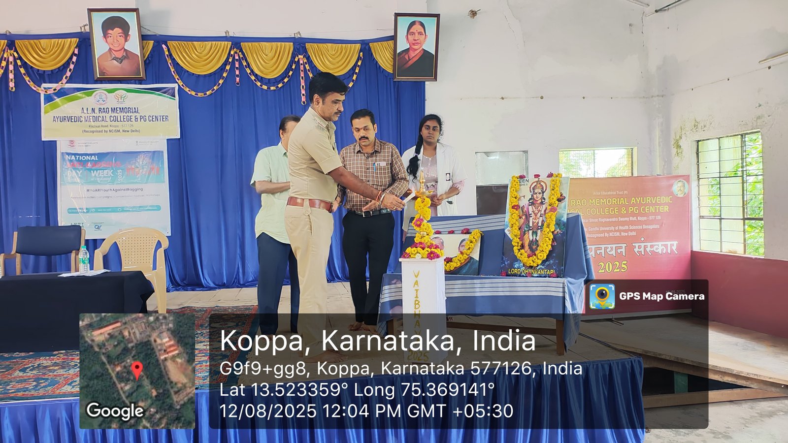 ಕೊಪ್ಪದ ಎ.ಎಲ್.ಎನ್.ರಾವ್. ಆಯುರ್ವೇದ ವೈದ್ಯಕೀಯ ಕಾಲೇಜಿನಲ್ಲಿ ರ್ಯಾಗಿಂಗ್ ವಿರುದ್ಧ ದಿನದ ಪ್ರಯುಕ್ತ ಅತಿಥಿಯಾಗಿ ಭಾಗವಹಿಸಿದ ಕೊಪ್ಪ ಪೋಲಿಸ್ ಠಾಣಾಧಿಕಾರಿ ಶ್ರೀ ಬಸವರಾಜ್ ಜಿ.ಕೆ. ಇವರು ವಿದ್ಯಾರ್ಥಿಗಳಿಗೆ ವಿಶೇಷ ಉಪನ್ಯಾಸ ನೀಡಿ ರ್ಯಾಗಿಂಗ್ ಒಂದು ಮಹಾ ಪಿಡುಗು ,ಇದು ಉನ್ನತ ವಿದ್ಯಾಭ್ಯಾಸ ಮಾಡುವ ವಿದ್ಯಾರ್ಥಿಗಳಿಂದಲೇ ಜಾಸ್ತಿಯಾಗಿದೆ, ರ್ಯಾಗಿಂಗ್ ಗೆ ಕಿರಿಯ ವಿದ್ಯಾರ್ಥಿಗಳು ಬಲಿಯಾಗುತ್ತಿರುವುದು ಬೇಸರದ ಸಂಗತಿ ಹಾಗೂ ಹಿರಿಯ ವಿದ್ಯಾರ್ಥಿಗಳು ತಮ್ಮ ಸಹಪಾಠಿಗಳು ಕಾಲೇಜಿಗೆ ಅಥವಾ ಹಾಸ್ಟೆಲ್ ಗೆ ಹೊಸದಾಗಿ ಸೇರ್ಪಡೆಯಾದಾಗ ತಮ್ಮ ಕುಟುಂಬದ ಸದಸ್ಯರಂತೆ ಕಾಣಬೇಕು. ಆಗ ಈ ರ್ಯಾಗಿಂಗ್ ಎಂಬ ಒಂದು ಕ್ರೌರ್ಯ ತಡೆಗಟ್ಟಲು ಸಾಧ್ಯವಾಗುತ್ತದೆ ಎಂದರು. ವಿದ್ಯಾರ್ಥಿಗಳು ಮೊದಲು ತಮ್ಮ ದೇಶ, ಸಂಸ್ಕೃತಿಗಳ ಕಡೆ ಗೌರವ ,ಪ್ರೀತಿ ಬೆಳೆಸಿಕೊಂಡಾಗ ರ್ಯಾಗಿಂಗ್ ನಂತಹ ಕ್ರೌರ್ಯವನ್ನು ತಡೆಗಟ್ಟಬಹುದು ಎಂದರು. ರ್ಯಾಗಿಂಗ್ ನಡೆಯದಂತೆ ತಡೆಯಲು ಬರೀ ವಿದ್ಯಾರ್ಥಿಗಳು ಮಾತ್ರ ವಲ್ಲದೆ ಸಂಬಂಧಿಸಿದ ಸಂಸ್ಥೆಯ ಜವಾಬ್ದಾರಿ ಸಹ ಮಹತ್ವವಾಗಿದೆ ಎಂದರು. ಸುಪ್ರೀಂಕೋರ್ಟ್ ಆದೇಶದ ಪ್ರಕಾರ ಯಾವುದೇ ರ್ಯಾಗಿಂಗ್ ನಡೆದಲ್ಲಿ ಅಂತಹ ವಿದ್ಯಾರ್ಥಿಗಳಿಗೆ ಜೈಲು ಶಿಕ್ಷೆ ನಿಗದಿಪಡಿಸುವುದು ಸೇರಿದಂತೆ, ಹಲವಾರು ಕಠಿಣ ಕಾನೂನು ಕ್ರಮತೆಗೆದುಕೊಳ್ಳಲು ಅವಕಾಶ ಇದೆ ಎಂದು ತಿಳಿಸಿದರು.